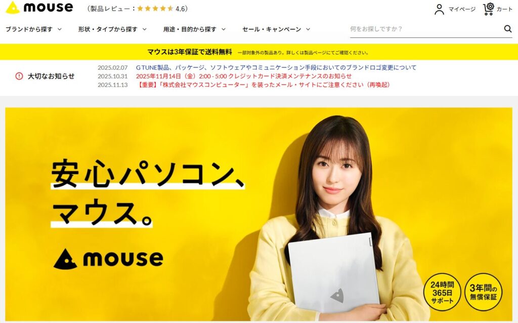 公式サイト(mouse-jp.co.jp)以外のURLでは注意が必要です。