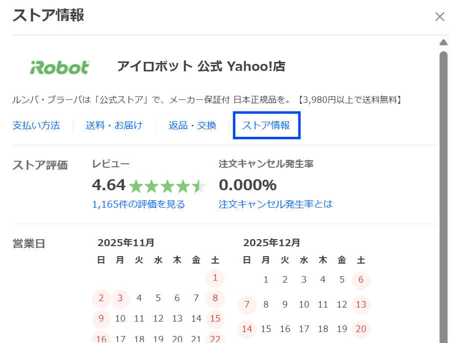 さらに気になる場合は、公式ページの「ストア情報」を開き、