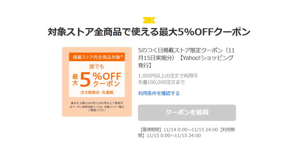 Yahoo!ショッピングのクーポンは大きく分けて2種類あります。