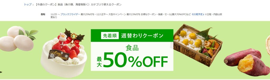Yahoo!ショッピング公式の「週替わりクーポン」ページでは、配布中のクーポンを一覧で確認できます。
